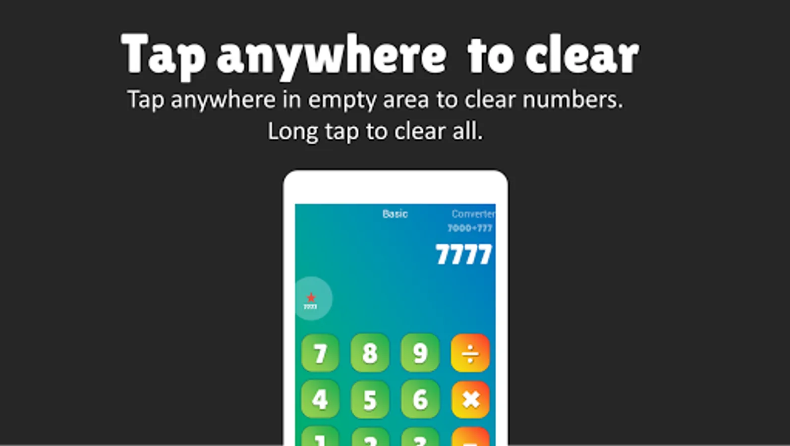 ★ No Dedicated Clear Button - Tap Anywhere in empty area around numbers(or on numbers) to clear numbers. Long tap to clear all at once. Its super easy.
