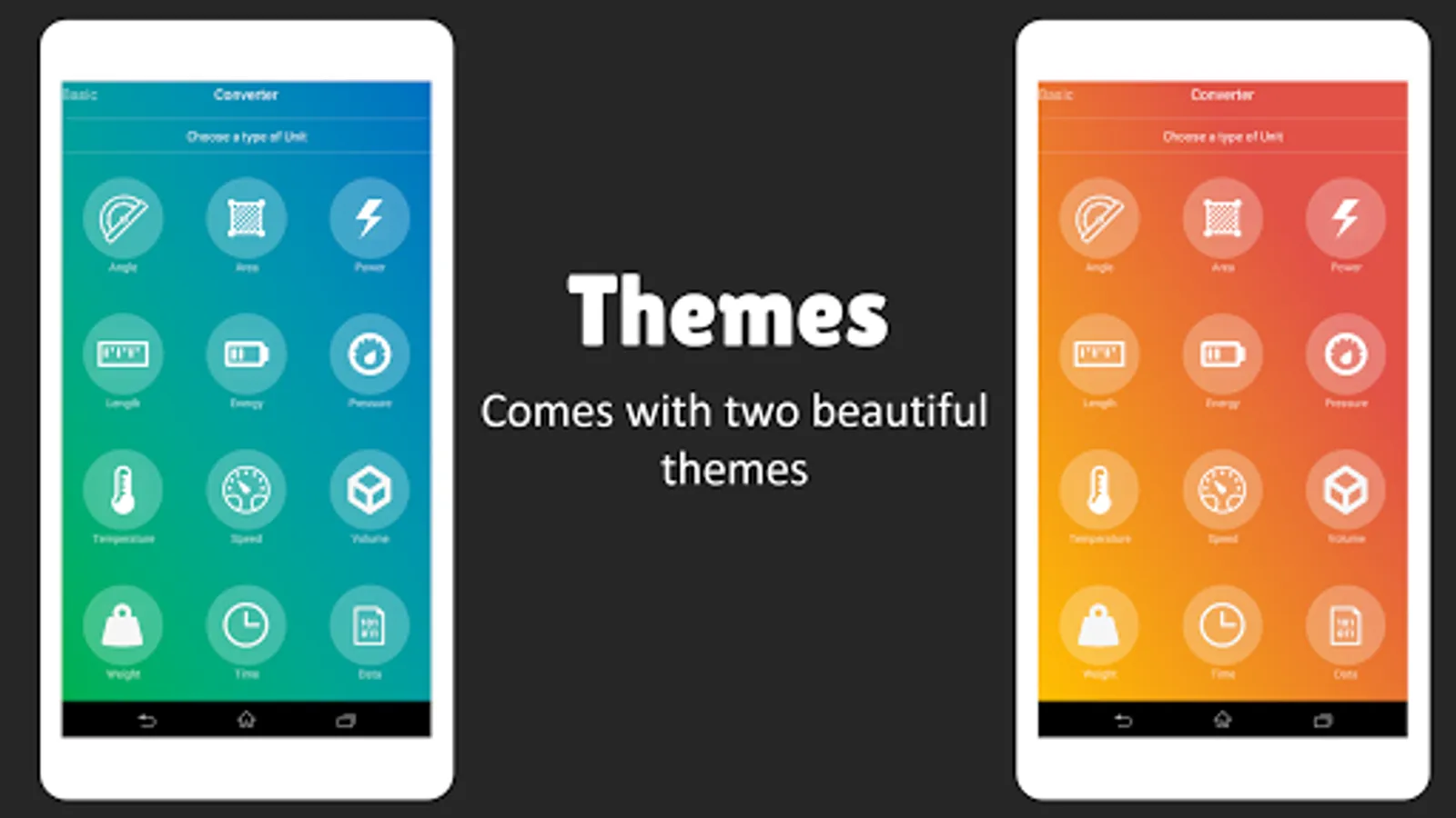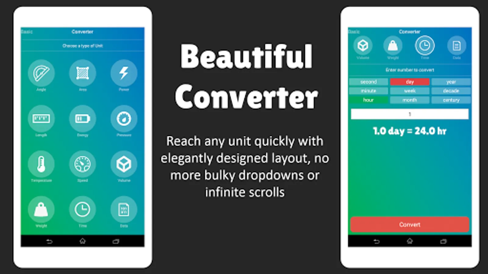 ★ Genio's Converter layout is designed for simplicity, and let user reach any unit quickly, without any hassles of going through bulky dropdown menus, or infinite scroll lists.