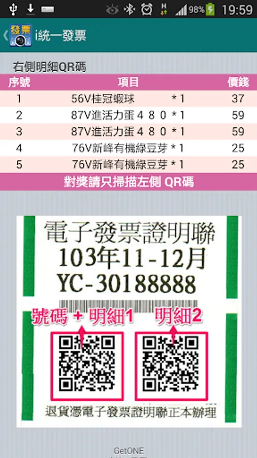 Provide continuous scanning of electronic invoices and rewards! Invoice detail reading function