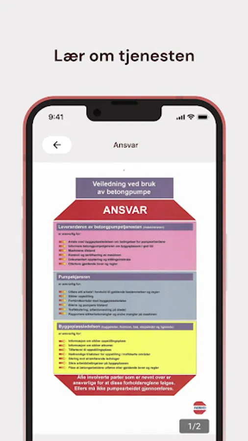 In this app you will find contact information and info about the use and responsibility regarding the use of AS concrete pumps' pumps.