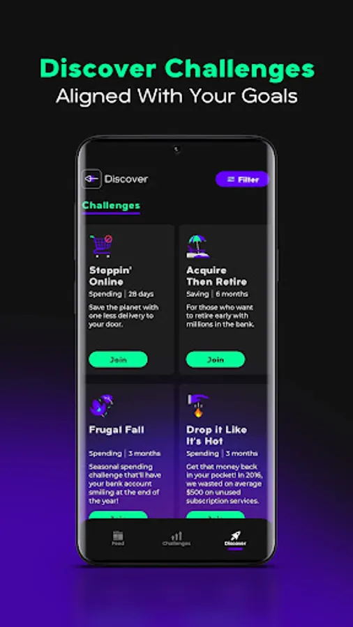 Based on your life milestones and interests, you'll join fun financial challenges that provide a pathway to your goals.