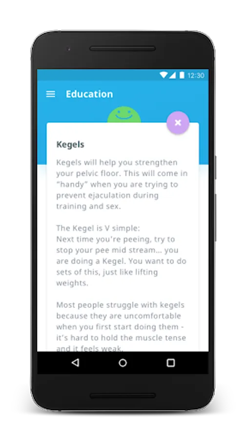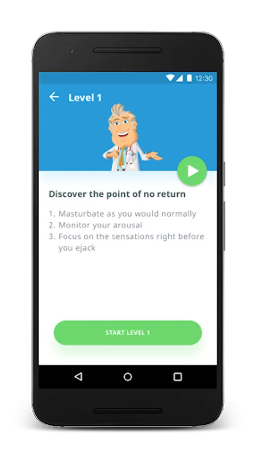 Training is led by "The Doc" our animated therapist. He’s programmed with information from that will help you last longer and prevent premature ejaculation. The Doc will support you on the journey to ejaculatory control. Follow The Doc's instructions, work through the levels, and you will learn how to control your ejaculation so you can last longer during intimacy.