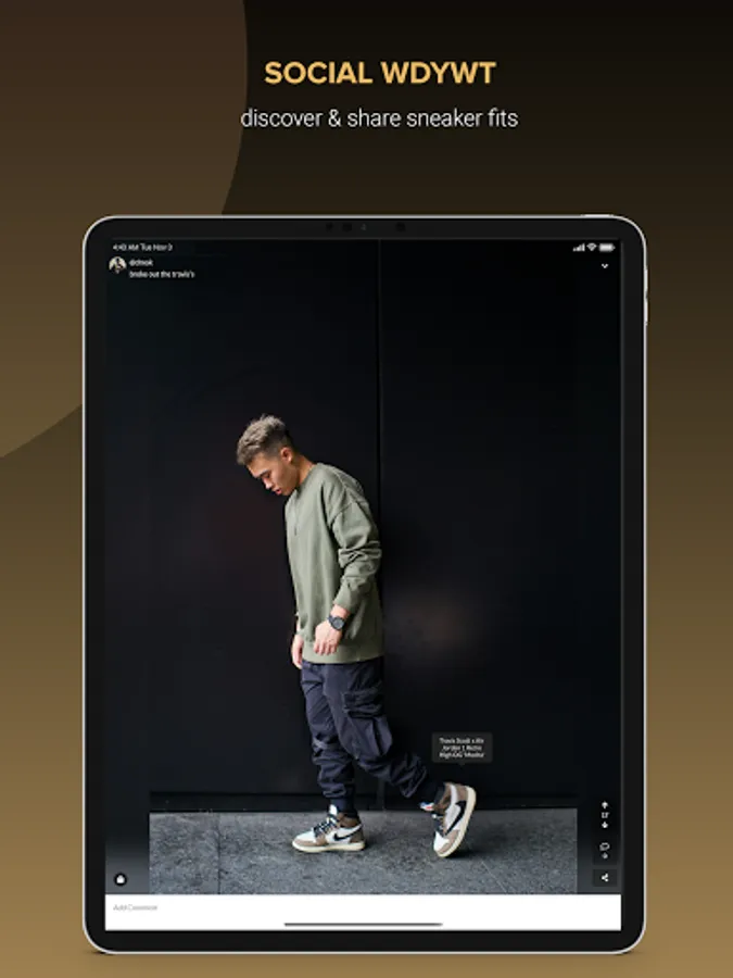 Join a fast-growing community of sneakerheads and streetwear enthusiasts where you can connect with others and kick off discussions about your favorite sneakers. Discover fire sneaker fits by browsing through the WDYWT (What did you wear today) feed.
