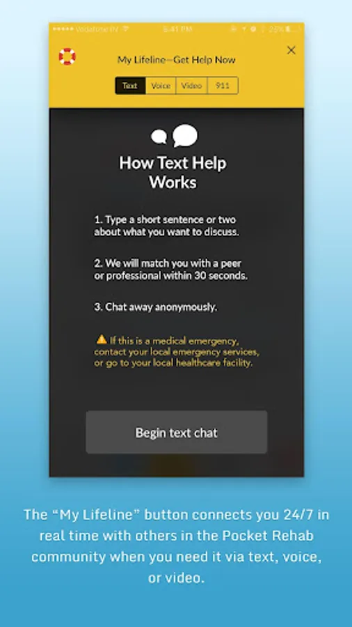 Community members can interact with others who have gone through or are going through similar situations. Get help and give help while retaining complete anonymity. Members can chat privately using My Lifeline or in the community chat with other community members. Expand your support network by adding recovery companions in the app and stay connected to increase your probability of sustained recovery.