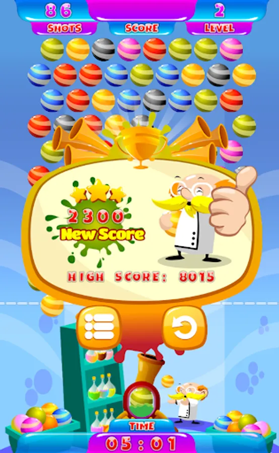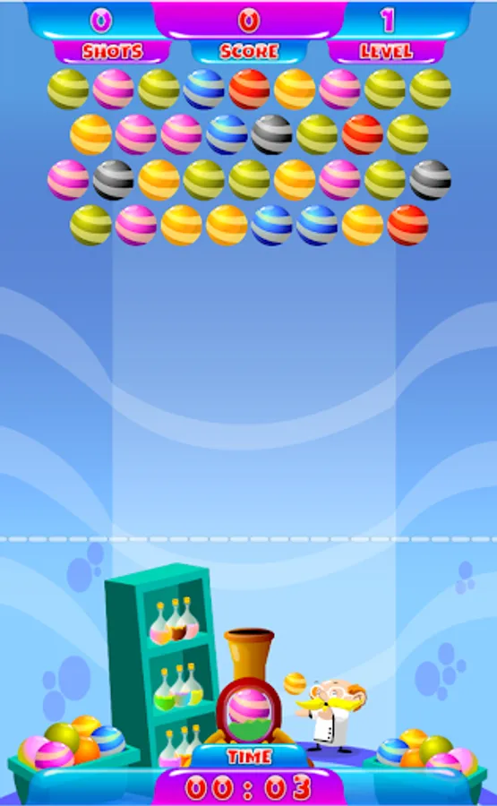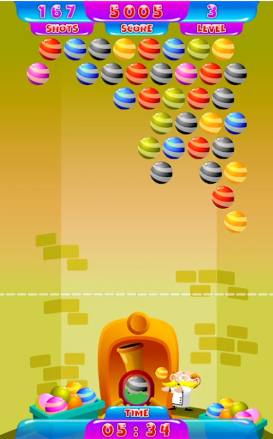 Bubble Shooter Professor it is classic arcade game. The main goal of the game is to clear the playfield by matching three or more marbles of the same color by shooting them from the canon. The game ends as the balls reach bottom line of the screen. It is very fun bubble shooting game. The best match 3 game when you can train your brain.