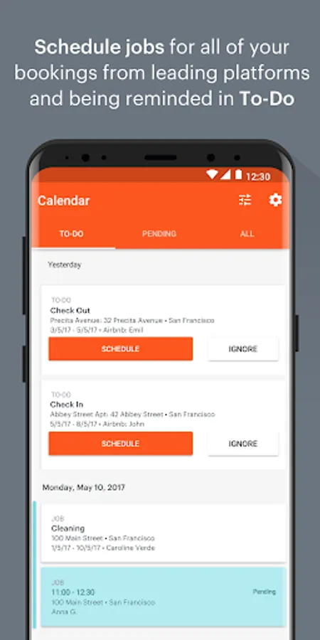 Properly seamlessly integrates with Airbnb and HomeAway (more platforms on the way) so you can sync your bookings and schedule turnover cleanings directly inside the app. You can also connect multiple accounts to manage all of your clients’ rentals from one login.