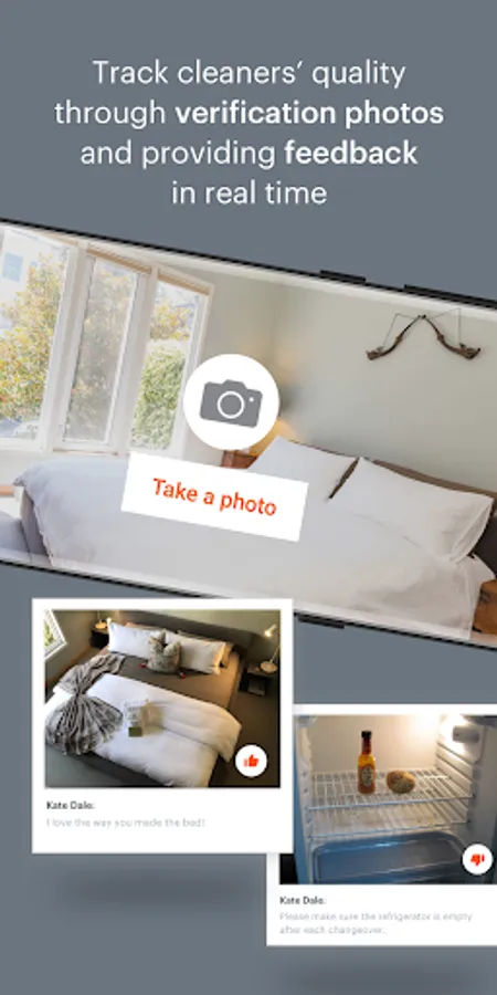 Receive notifications when your cleaner started and finished the job at your listing. You can also get photos of finished work, problem reports, and updates on completed tasks as if you were there yourself!