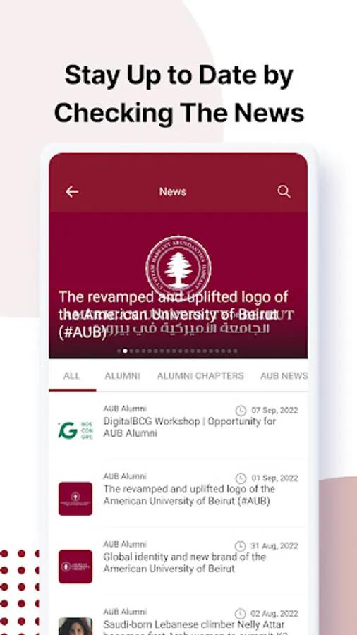 The AUB Alumni App allows alumni to tap into AUB’s worldwide community, stay connected and up-to-date with the latest news from #AUB and other alumni, and streamline communications with the Office of Alumni Relations.
