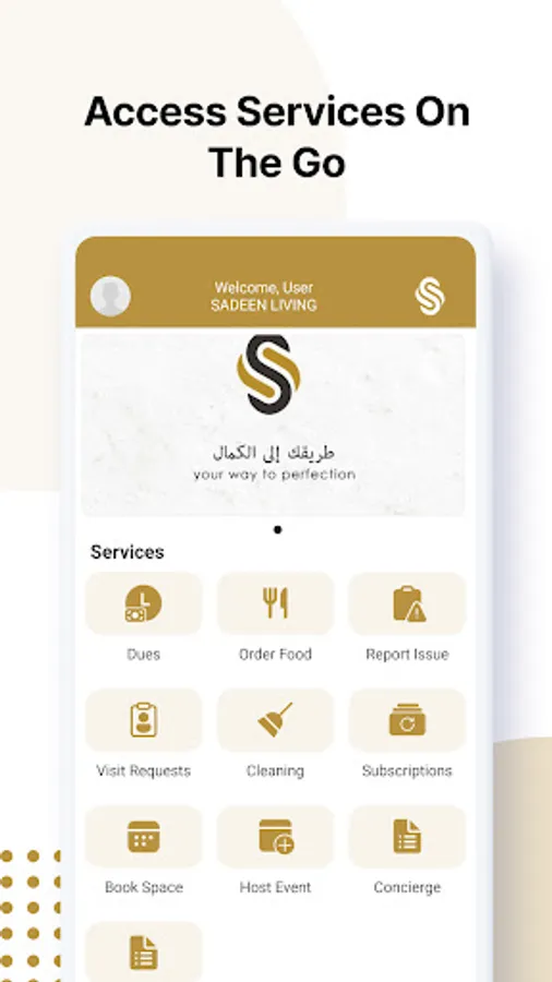 وقد تم تصميم تطبيق SADEEN LIVING ليكون سهل الإستخدام وحيث تلمس منذ اللحظة الأولى لإستخدامه انه مميز ومفيد ويمنحك شعور بالإعتمادية عليه في ادارة احتياجاتك في مقر سكنك مما يمنحك شعور اكبر بالراحة والطمأنينة.