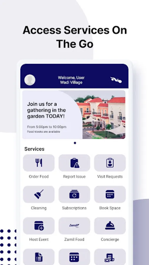Wadi Village App gives its residents 24-hour access to pay rent, submit work orders, list items for replacement at home, and book any gatherings or activities.