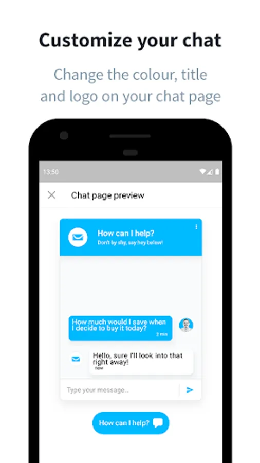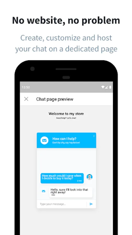 No website, no problem – Create, customize and host your chat on a dedicated page.