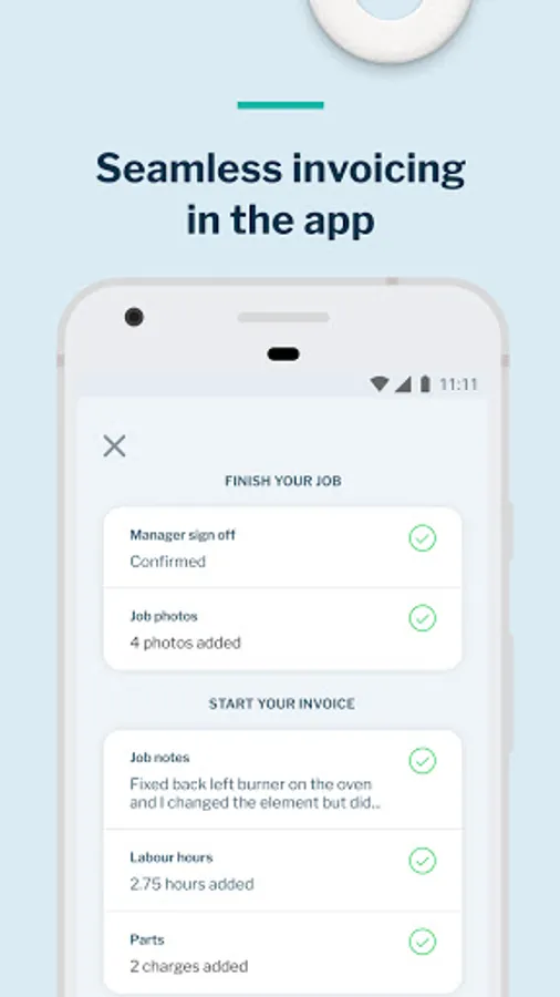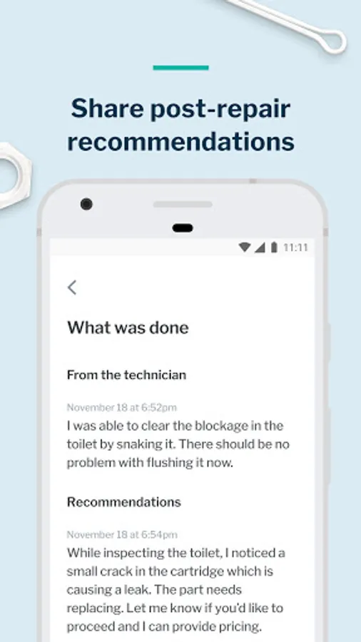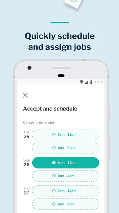 Through our app, you can get notified about new available jobs, accept and schedule within the app, and add photos and recommendations that are available to customers after the job is complete.