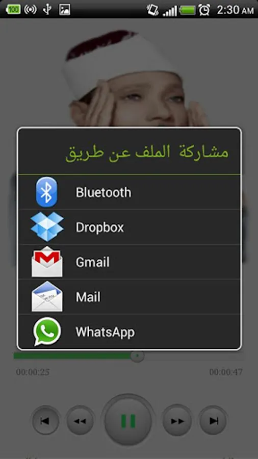 إمكانية مشاركة أي سورة عن طريق البلوتوث أو البريد الالكتروني او الواتس اب وغيره.