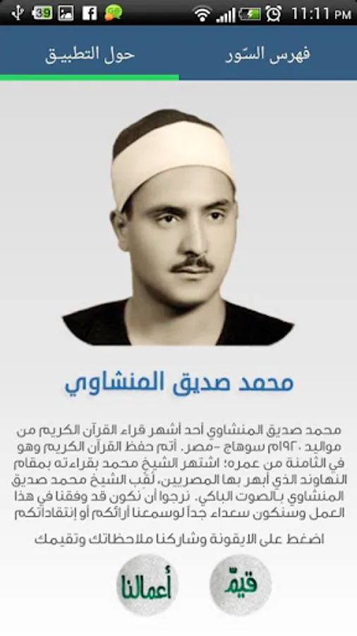 إمكانية تحميل اي سورة على الجهاز والاستماع لها بدون الاتصال بالانترنت.