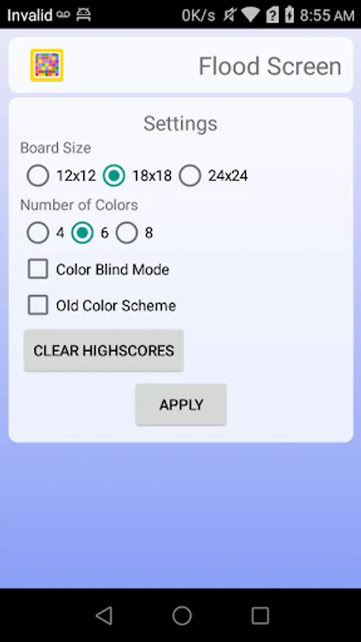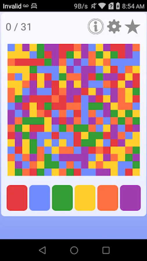 Flood Screen is a simple, challenging and addictive puzzle game. You must fill the entire game board with a single color in less than the maximum allowed number of moves.