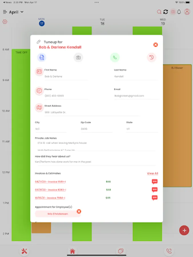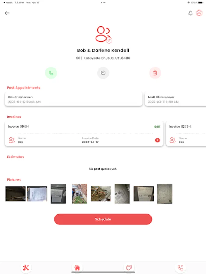 Add customers to your schedule seamlessly, and track your pictures and previous work to your customer contacts.
