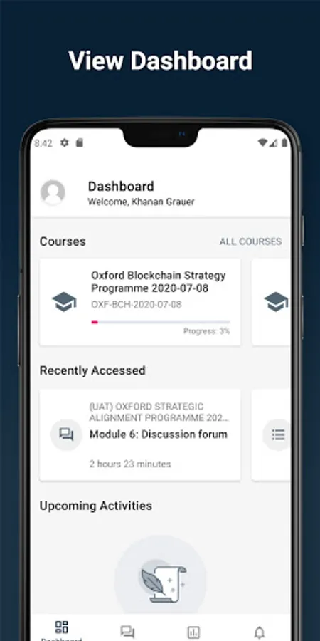 - Take part in quizzes, participate in forums, and submit assignments