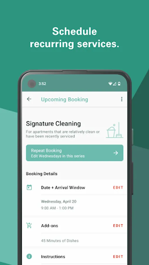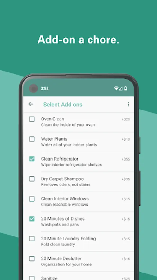 With the Chores features, book fractional cleaning services like cleaning floors, doing dishes, or clearing clutter. You can also add chores to house cleaning services so you can reduce the prep time normally required to get ready for the housekeeper.