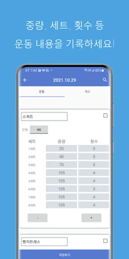 You can check detailed records (weight, set, number of repetitions, etc.) by clicking the date