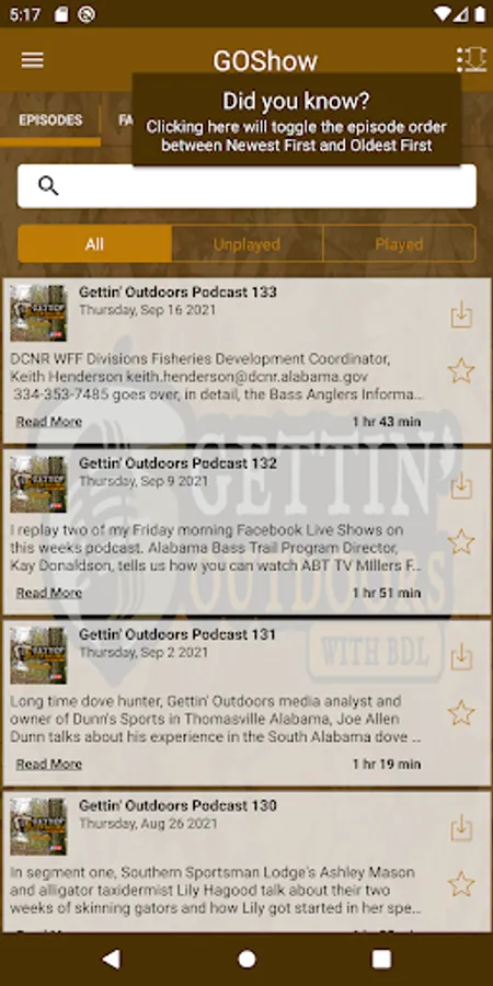 With this app you are always connected to the latest episodes and the show. Quickly star episodes and save them to a list so you can easily enjoy them over and over! This app has a Car mode too! Rotate your phone to display larger playback controls.