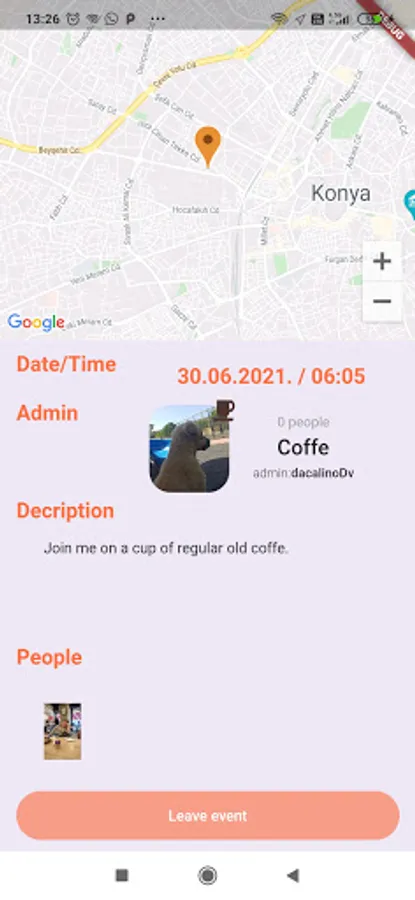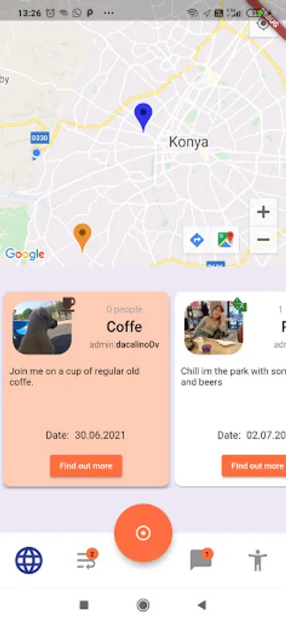 Browse events in Your current city or make one. When the event admin accepts Your request, You can chat with event members in a group chat and discuss details of Your meeting.
