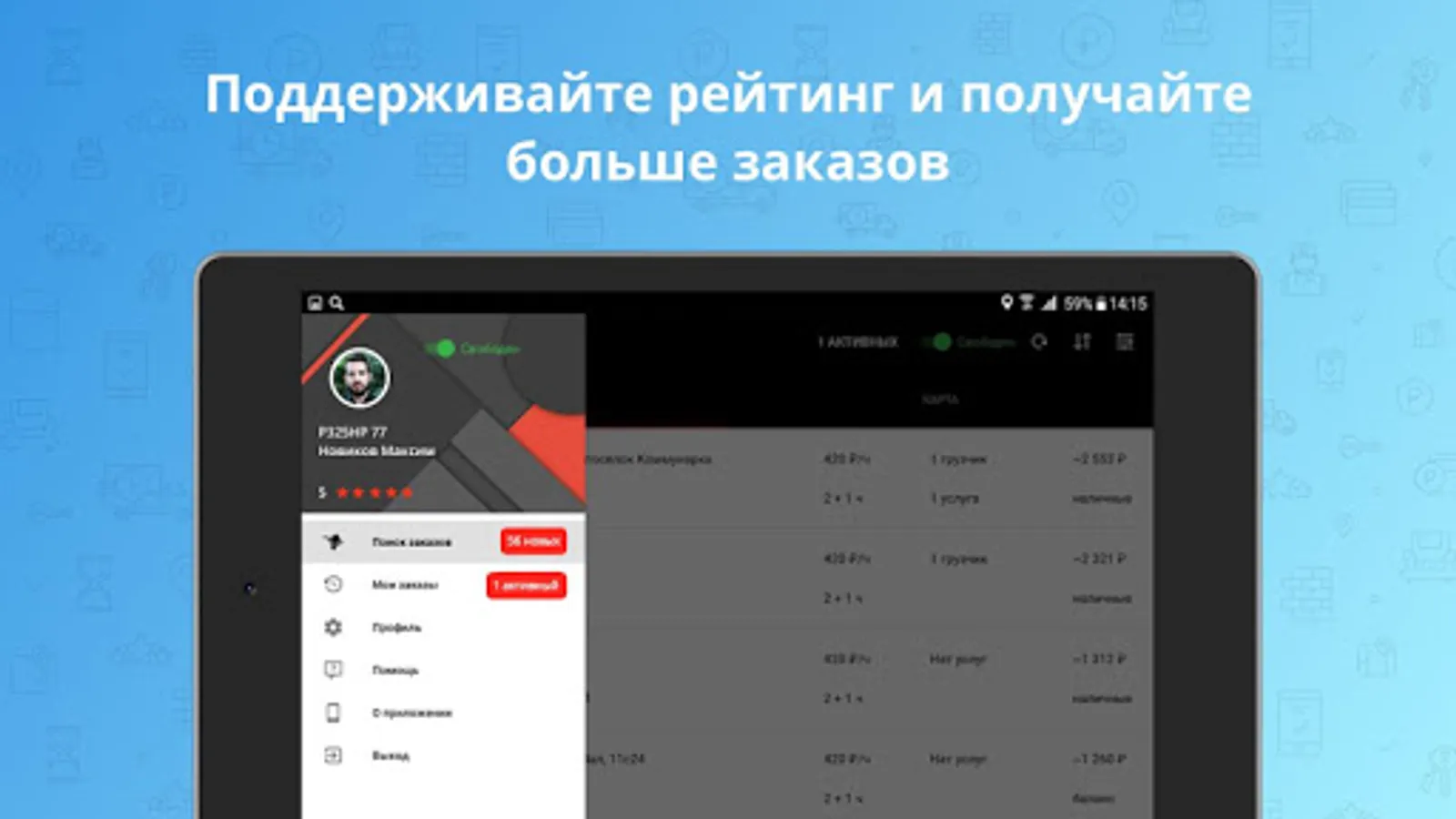Mobile application for drivers with a personal truck and transport companies. Search for goods, order management, loading scan copies of shipping documents, taximeter.