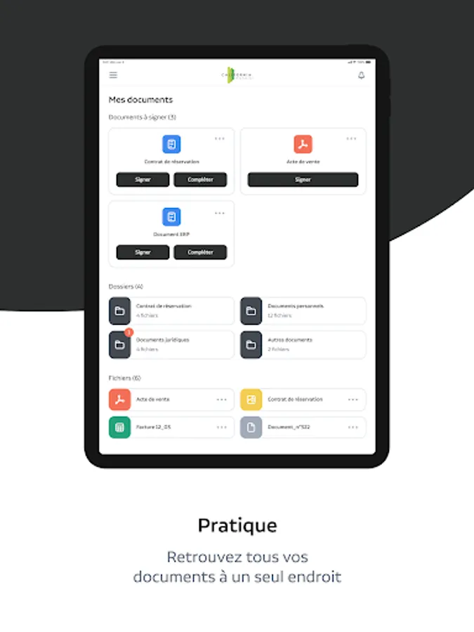 Find all of your file, the catalog of choices to personalize your accommodation, your notary file, photos and videos of the program. More than an administrative space, your Customer Space allows you to stay in contact with the developer at all stages of the real estate transaction. Its messaging system facilitates and streamlines exchanges. You follow your regulations, access all the commercial and legal documentation. You will be able to deposit your information, the necessary documentation such as your loan offer and sign your contracts electronically, all in a completely secure manner.