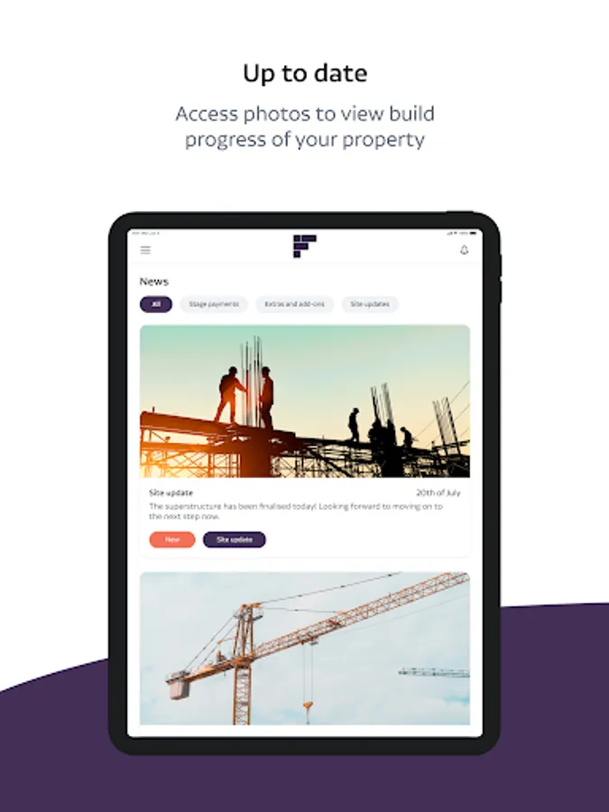 The Fruition Properties Portal app provides a simple, personalised customer experience throughout every stage of your property purchase. Access all your personal documents including reservation form and floor layouts and also have the option to receive updates about the progress of the development. From the point of reservation, right through to taking possession of your new home, the Fruition Properties Portal will be with you at every stage.