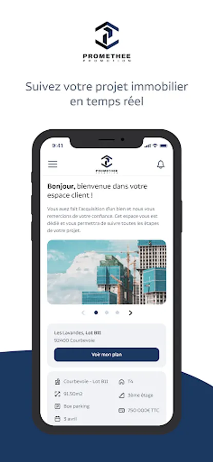 Purchaser area dedicated to each of our clients. It allows our clients to interact with our teams throughout their real estate project, to follow the stages, to have a documentary space.