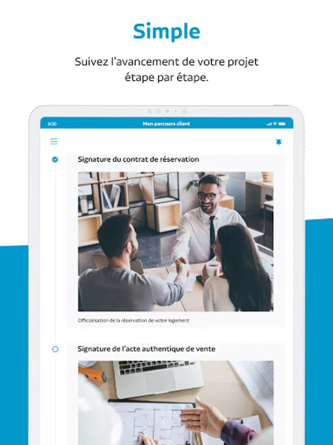 We enable sellers of real estate to provide their buyers with a customer area in order to reinvent the customer experience of a real estate purchase.