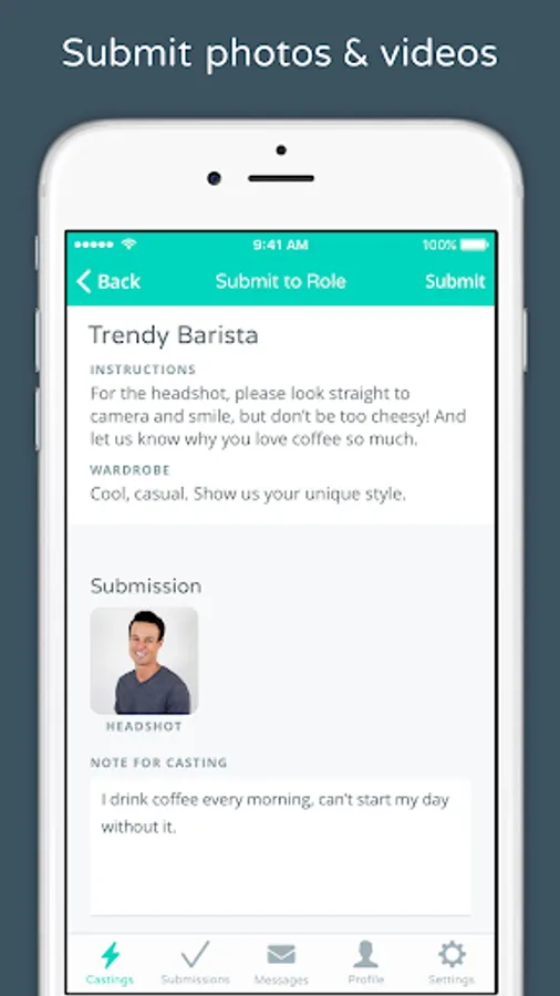 SUBMIT - Send live photos and videos directly to casting professionals, filmmakers, and companies looking for talent.