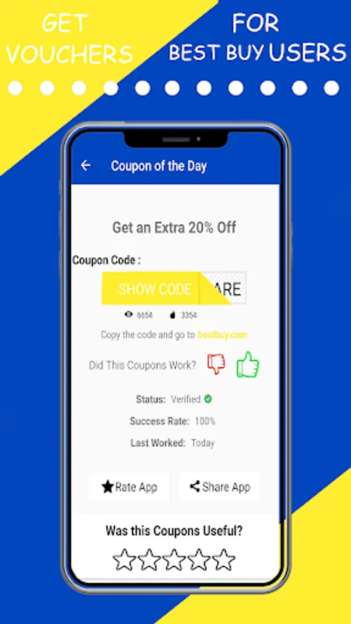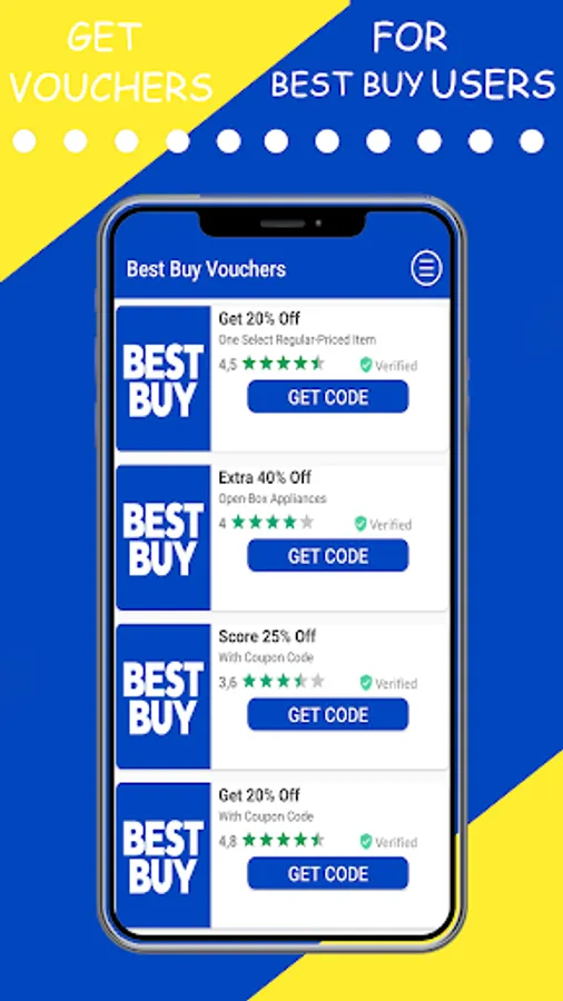 This Vouchers for Best Buy users App is not an Offical App. All trademarks, service marks, trade names, trade dress, product names and logos appearing are the property of their respective owners.
