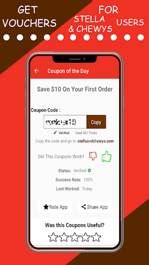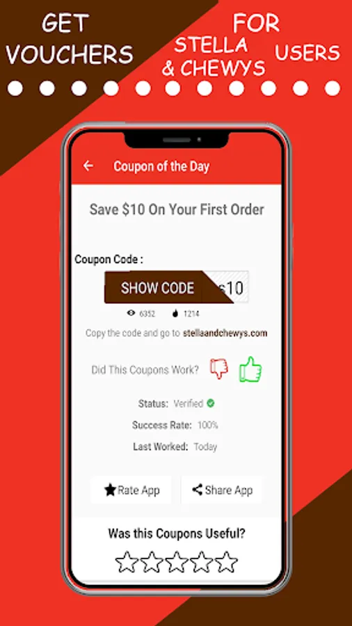 This Vouchers for Stella & chewys users App is not an Offical App. All trademarks, service marks, trade names, trade dress, product names and logos appearing are the property of their respective owners.