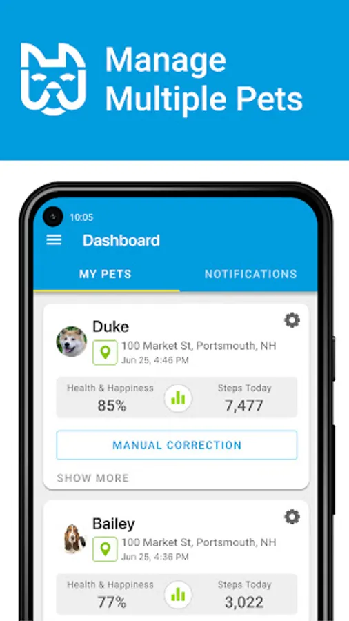 Multiple Dogs: Conveniently tracks all your in one Wagz App.