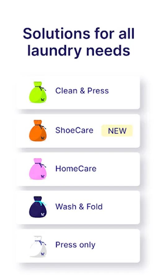 When you place your first order on our app, our driver will bring you our color-coded bags, so all you need to do is fill those bags according to the service you need: