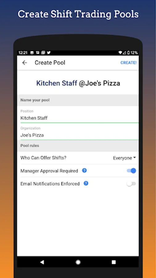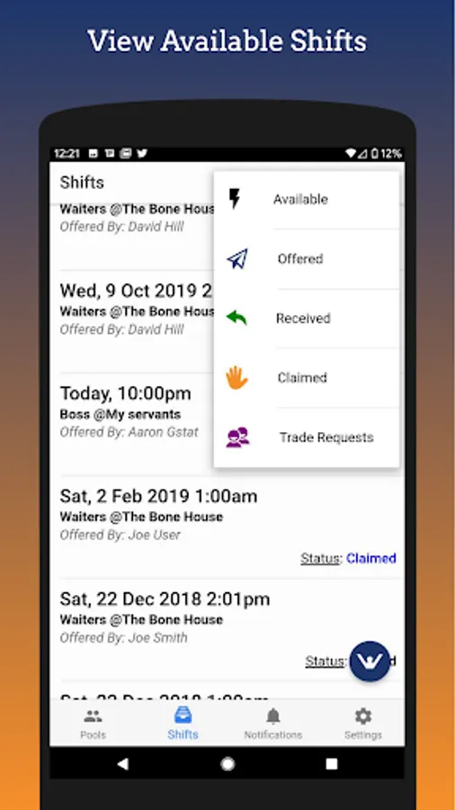 - Organize your staff into different shift trading pools based on department, position, or skill set.