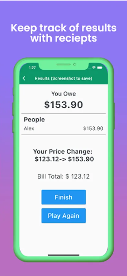 Make bill splitting more exciting and fun with a game that tests your abilities of deception and perception. Winners get a discounted bill and losers pay a premium.
