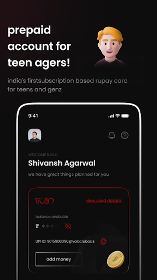 ⦿ A personal Yolo prepaid card powered by Rupay Card, and a feature-packed social and payments app that works for everyone in the family 😏