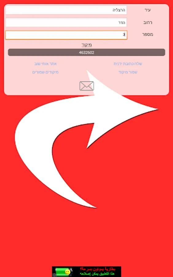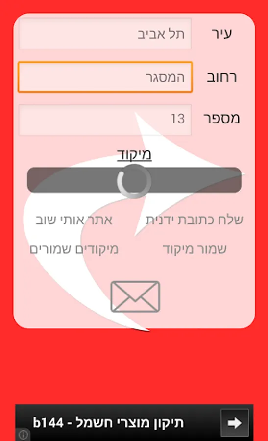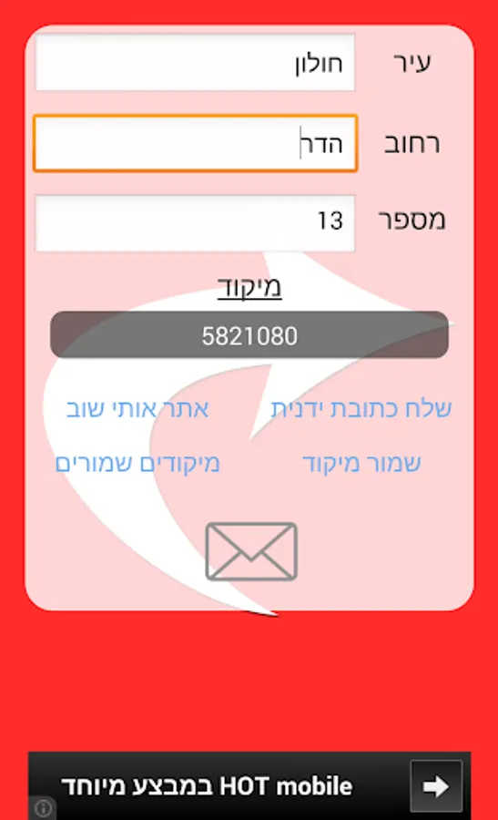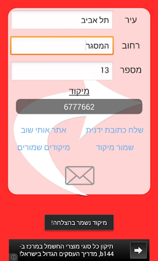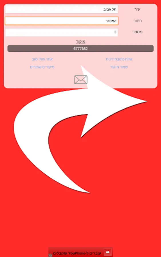 The app makes it very easy to send stuff, and allows to get the number of new zip code in Israel