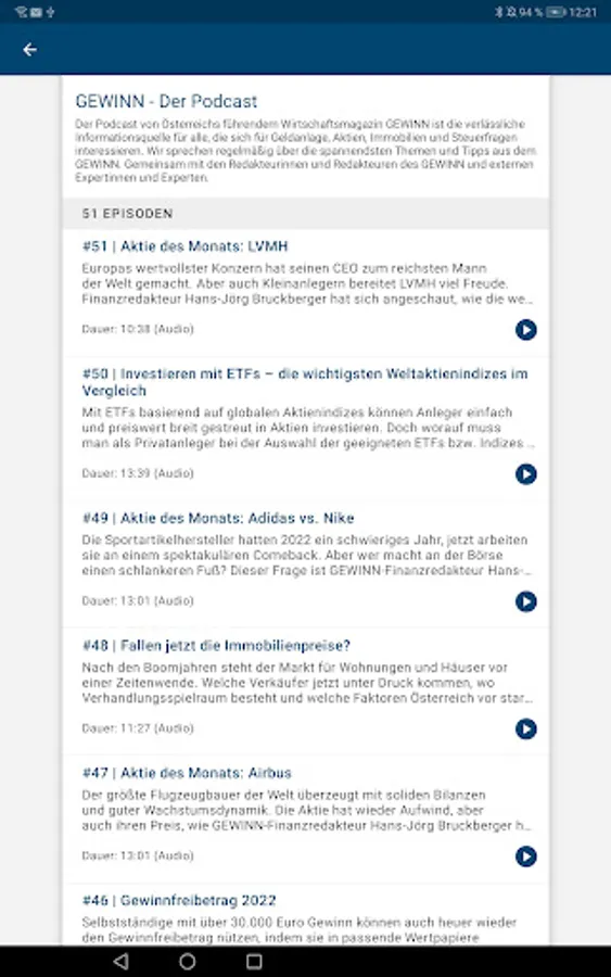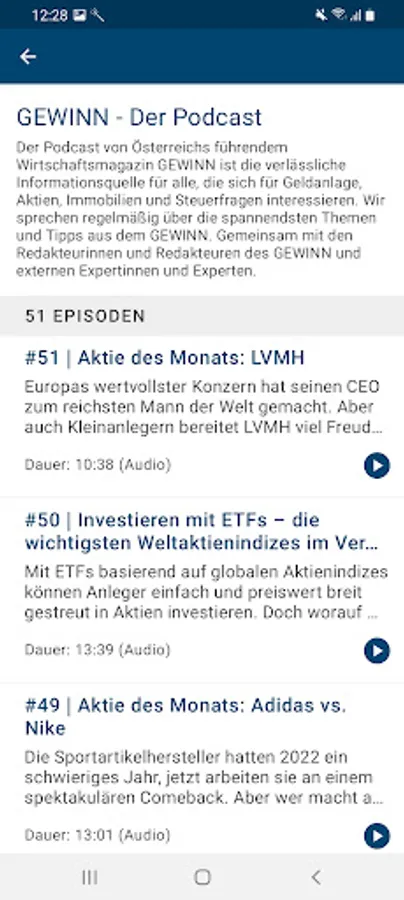 • Access to the GEWINN podcasts directly in the app