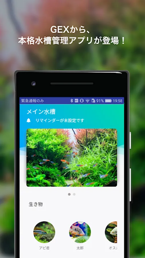 飼っている魚や水槽の情報を保存、水槽や魚の様子を写真と一緒に記録できる!