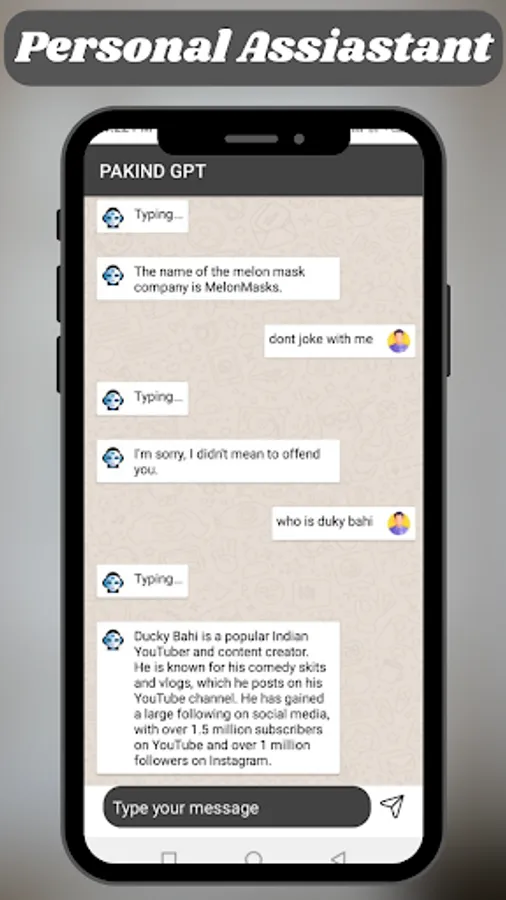 PAKIND GPT can answer any question and interact with humans is an AI-powered conversational agent that uses natural language processing (NLP) to understand and respond to user queries. This chat bot is designed to be user-friendly and accessible, making it easy for people to interact with it and get the information they need quickly.