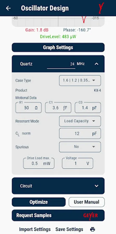 The simulation app newly launched and further developed by GEYER Electronic supports you with just a few clicks when creating your design and existing circuits can be checked or optimized. Therefore it will help you to choose the right quartz crystal.