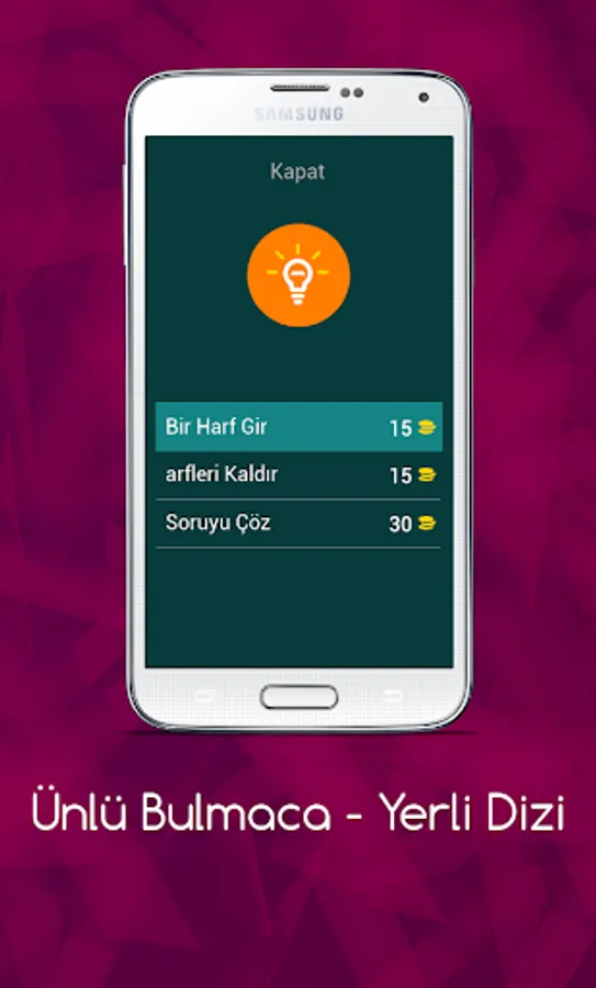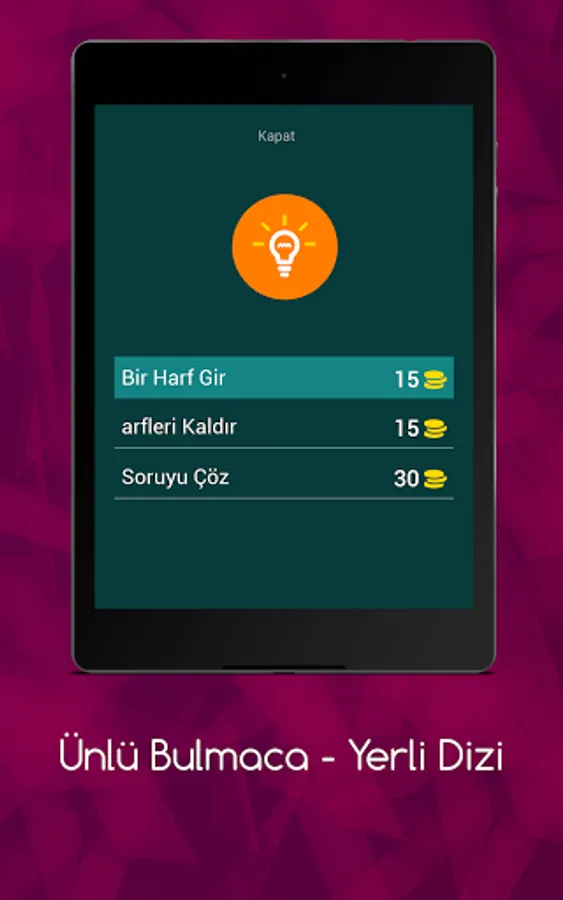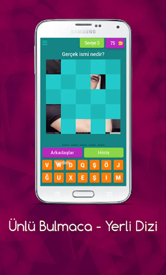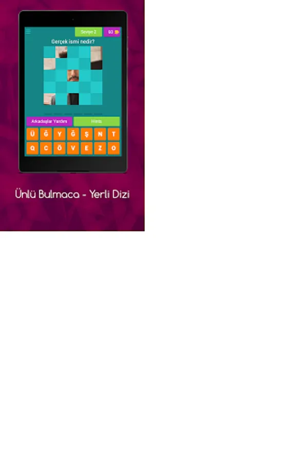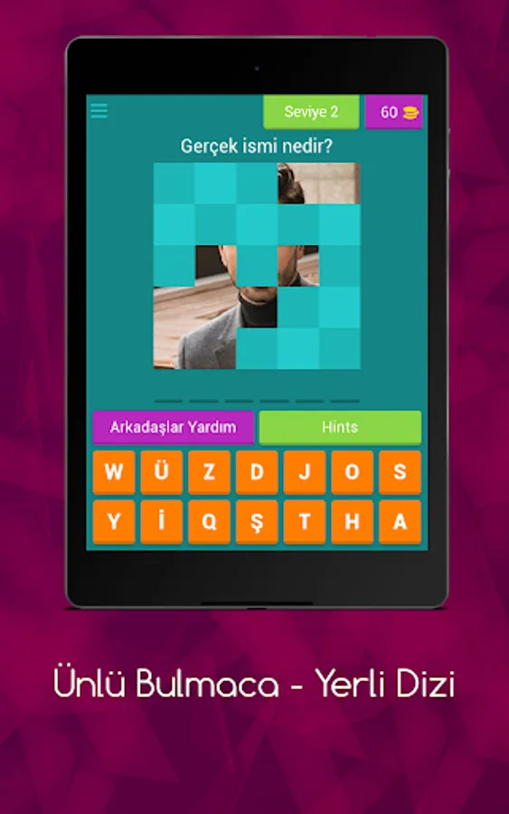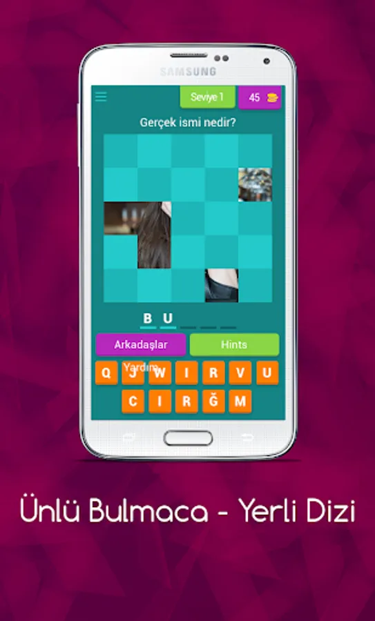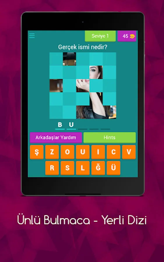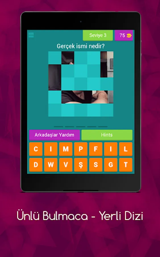 • You can get hints (receiving letters and eliminating wrong letters) from the TV actor you're stuck with or ask your friends!