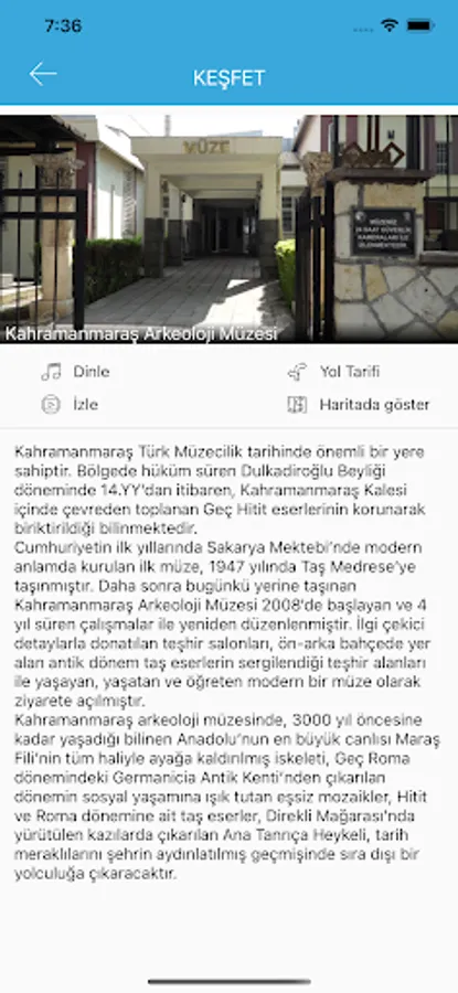It is a tourism application prepared by Dulkadiroğlu Municipality for tourists and guests visiting the Gezede Dulkadiroğlu region. Gezede provides visitors with video, audio and text information about tourism assets. With Gezede, visitors can view the touristic locations closest to their location and get directions from within the application. Guests can view the thematic and geographical routes in GeziEDE, examine the locations within the route and travel.