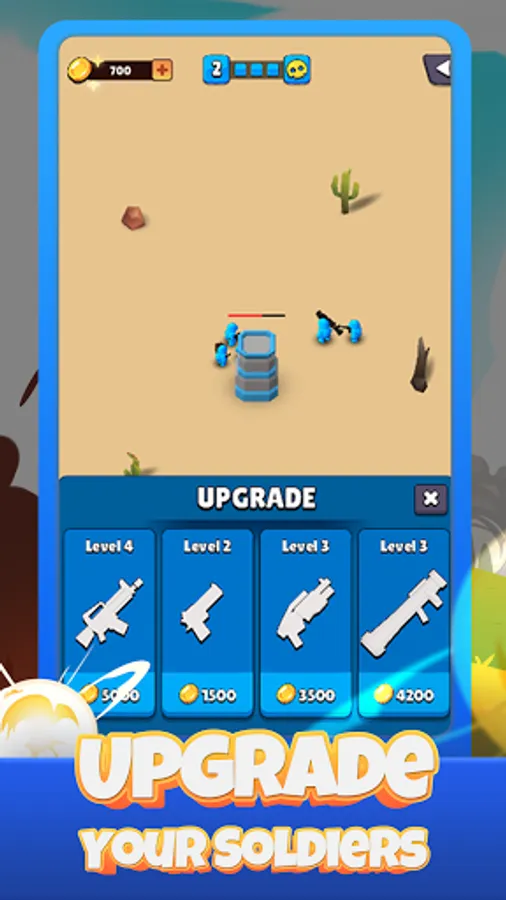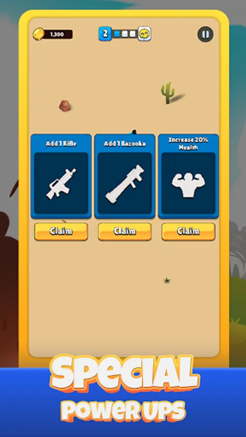 - Reinforcement: Extra-man and power-ups will be provided between each level for a stronger army. Use them wisely for your longer cod survival.