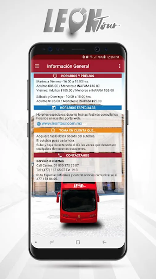 Visit museums, known cultural tours, shopping centers, Aquarium of Leon and of course the warmth of its people, aboard this fabulous panoramic double-decker bus.