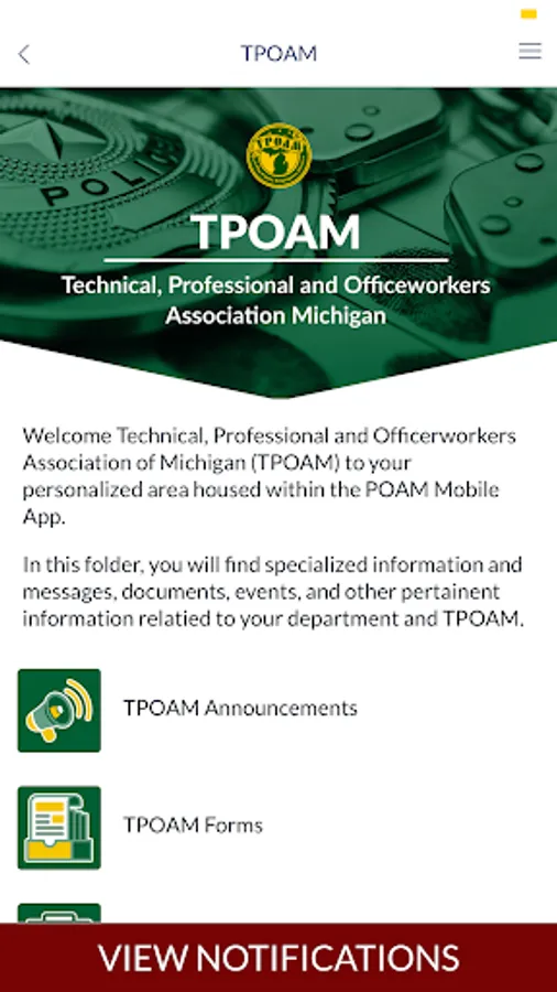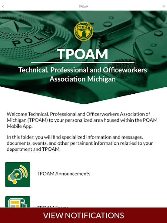 This is an app for POAM members in the state of Michigan. Our app provides information, important contact information, and support documentation periodically needed by members available for immediate download.