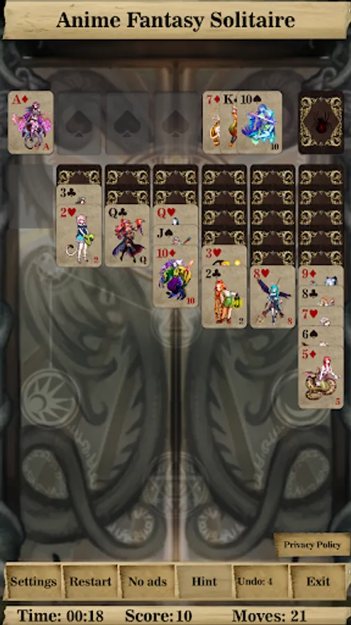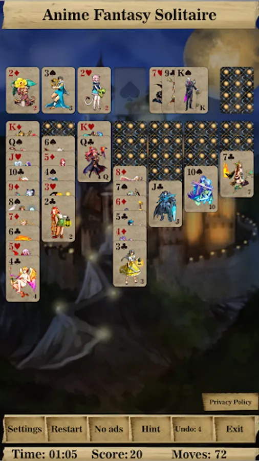 This app is for player who like to relax while solving solitaires, and also love fantasy or anime. The cards here have pictures of fantasy characters, drawn in anime style.