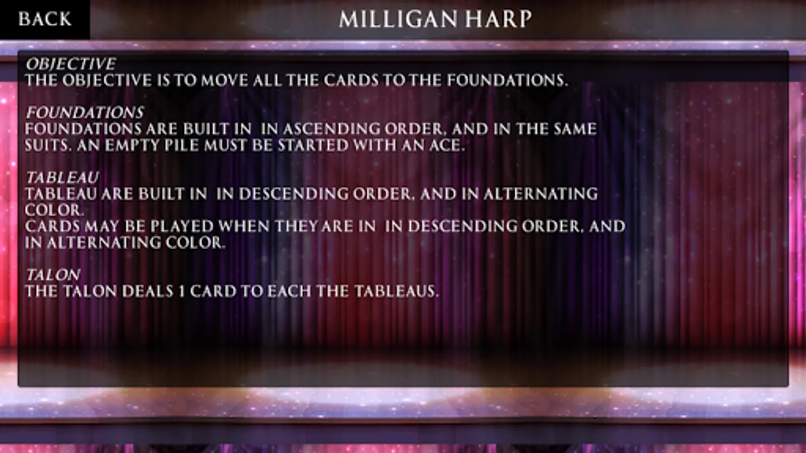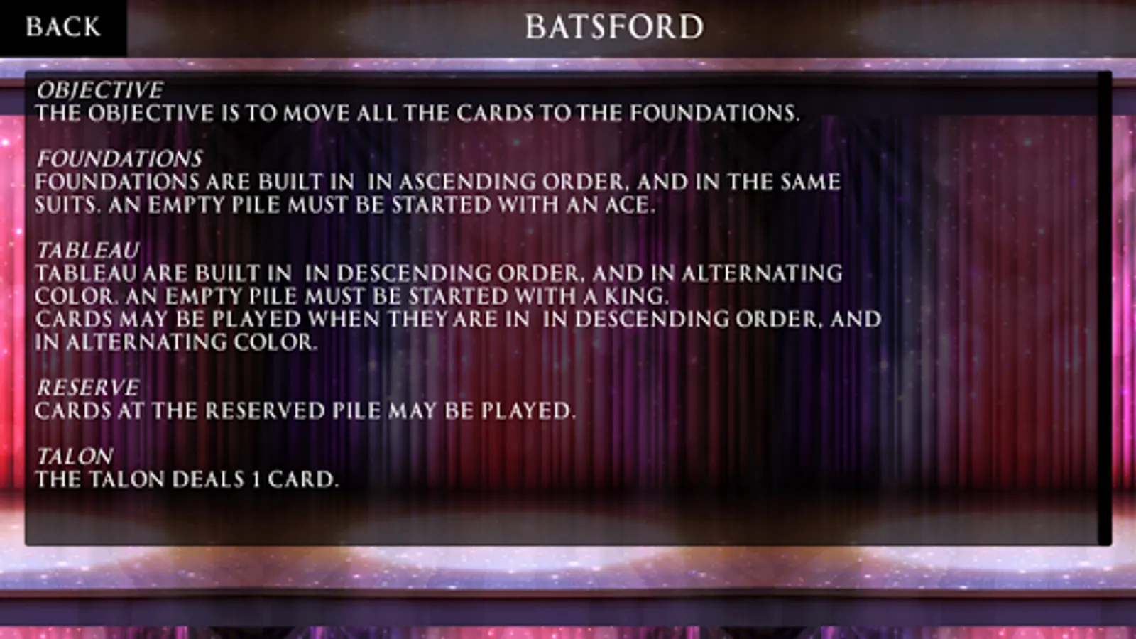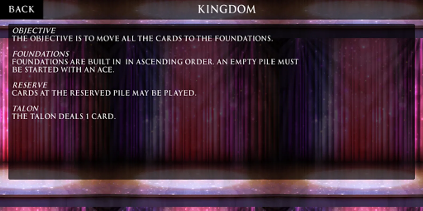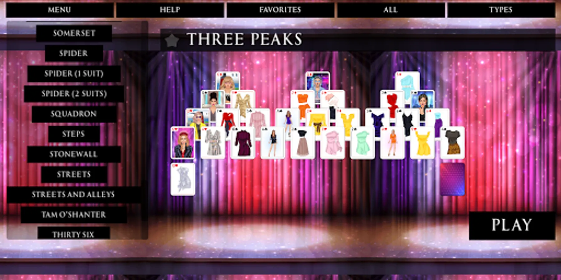 Choose from 80 types of solitaires in the game (basically, almost all that exist). You probably already know the popular ones like Klondike, Spider, Three Peaks and Pyramid, but there is a lot more, and you can learn how to play them in the Help section inside the app.